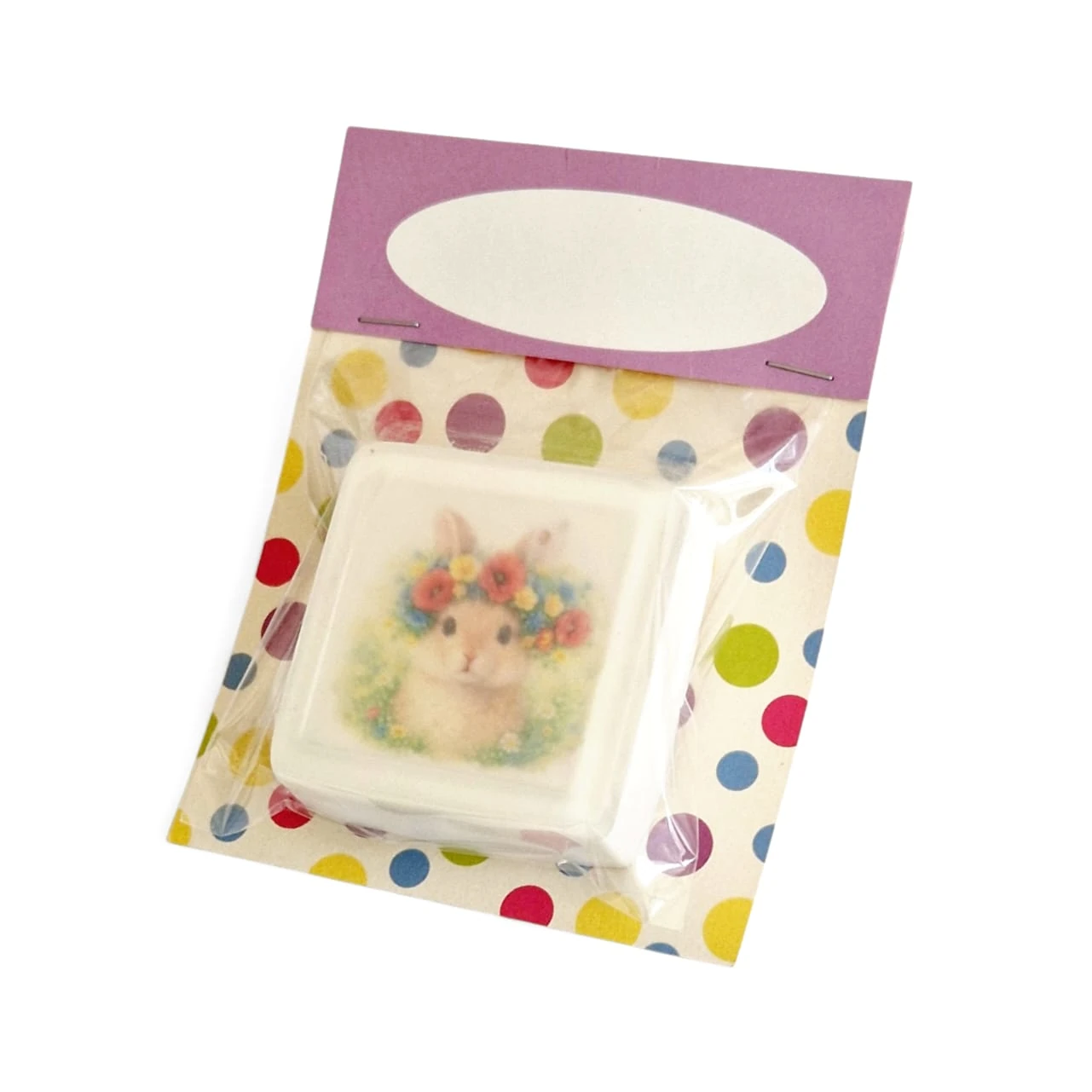 Legen Sie die Seife in eine Folientütte und befestigen Sie sie z.B. mit einem Tacker an die Karte.